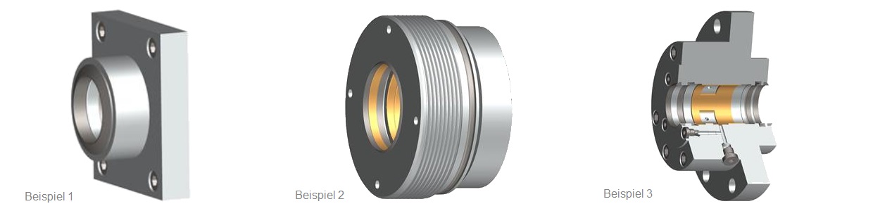 Flansche sind mit Schrauben an der Maschine fixiert, um die Kräfte von Stangen oder Wellen aufnehmen zu können.